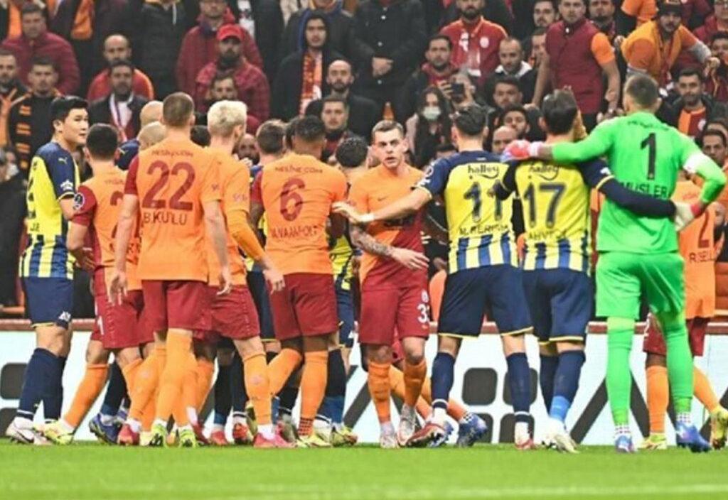 Türkiye'nin kilitlendiği derbide saha karıştı.