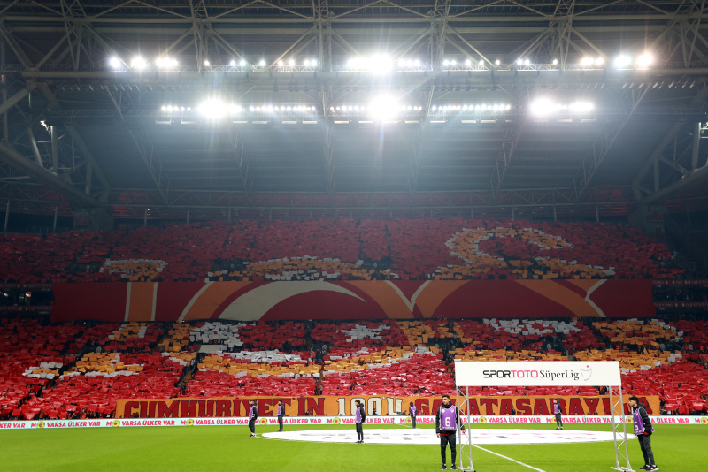 Bu sırada doğu tribününde kartonlarla Galatasaray'ın hazırladığı Cumhuriyetin 100. yılı logosunun görseli yapıldı.