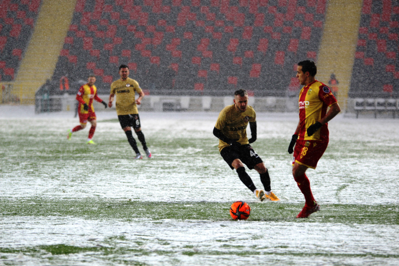 Yoğun kar yağışı altında oynanan mücadelenin ilk yarısı 0-0 sona erdi.