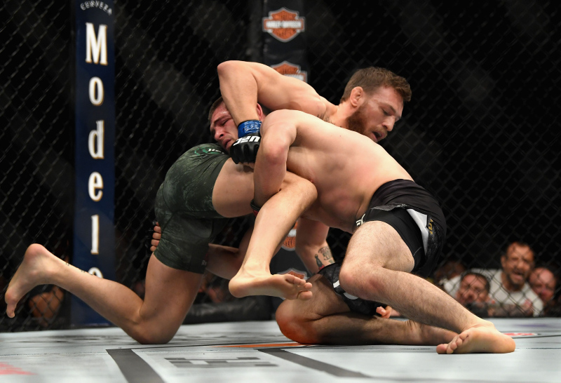UFC hafif sıklet unvan maçında İrlandalı Conor McGregor ve Rus Khabib Nurmagomedov, UFC'nin 229. etkinliği çerçevesinde Las Vegas'ta bulunan T-Mobile Arena'da karşı karşıya geldi.