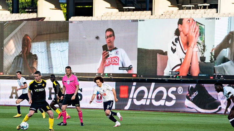 Milliyet'in haberine göre; 1-1 biten karşılaşmada ev sahibi Aarhus, yepyeni bir model denedi. Virüs nedeniyle maçlar seyircisiz olduğu için tribünlere dev ekranlar yerleştirildi.