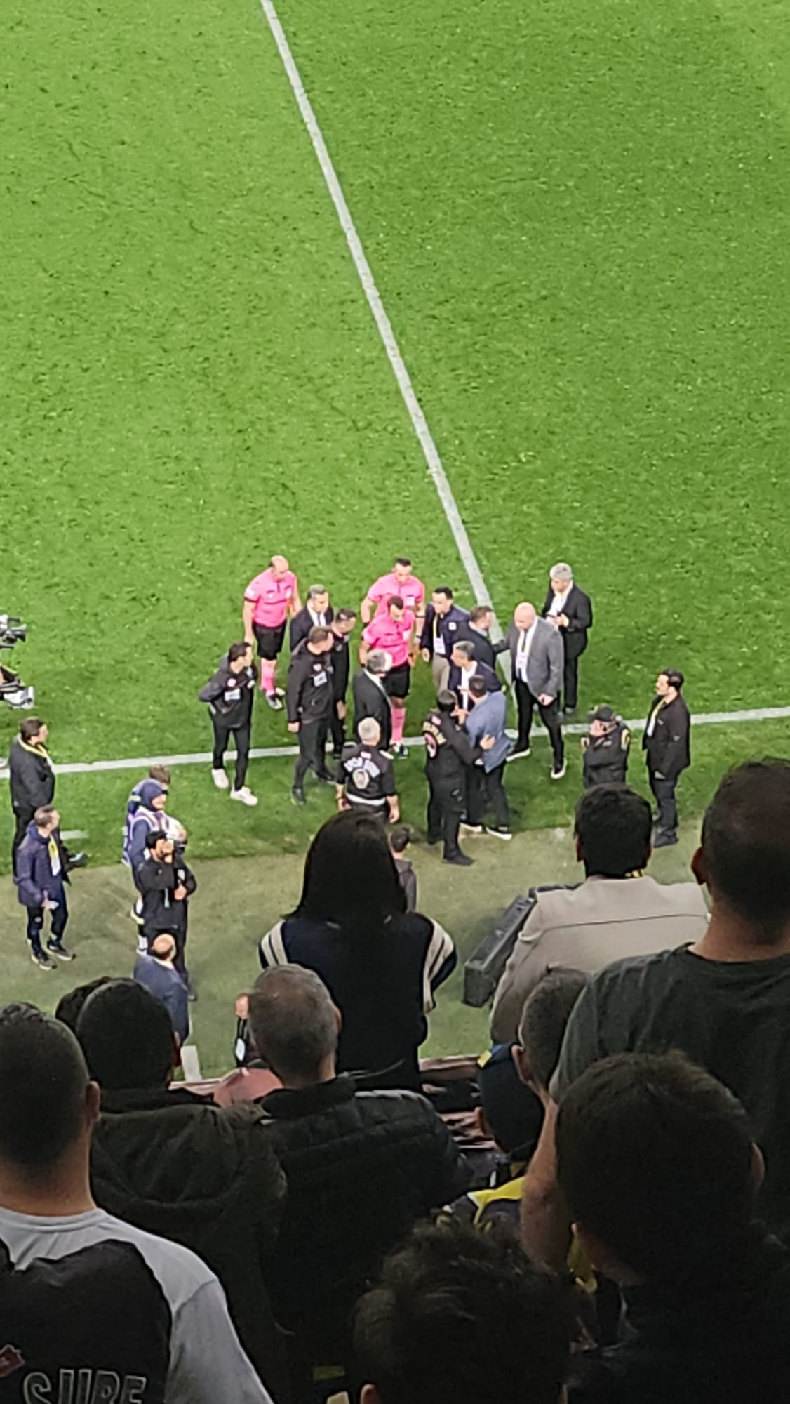 İlk yarının bitiş düdüğünün çalmasının ardından önce Jesus hakemin yanına giderken sonrasında Fenerbahçe yöneticileri saha kenarında hakemi protesto etti.