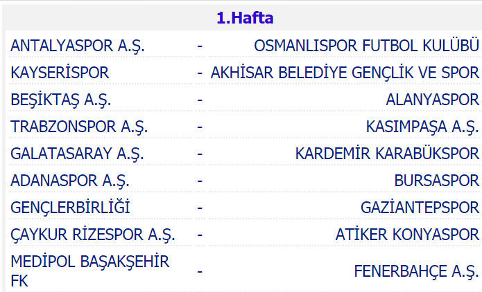 Süper Lig 2016-17 sezonu fikstürü belli oldu!