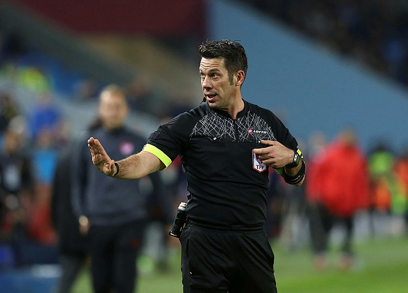 2 Kasım'da oynanan Trabzonspor- Göztepe maçında İzmir ekibinin Jerome ile bulduğu gol öncesi top, hakem Fırat Aydınus'a temas ediyor.