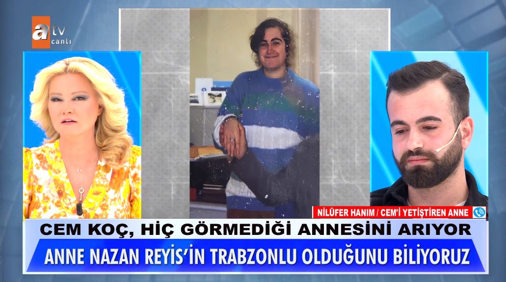 21 yaşındaki Cem Koç, hiç görmediği annesi Nazan Reyis'i bulmak için Müge Anlı ile Tatlı Sert programında soluğu aldı. Cem, annesinin kendisini bırakıp gittiğini ve babasının eşi Nilüfer'in kendisini büyüttüğünü söyledi. Ben annemin kokusunu almak istiyorum " Durumu yoksa ona bakarım" diyen Cem'in sözleri yürekleri sızlattı.