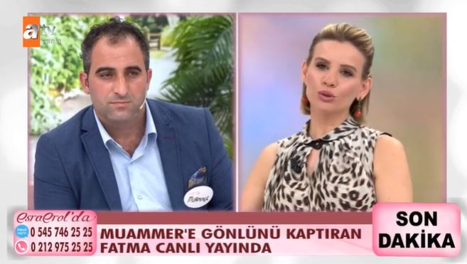 Esra Erol'da programına katılan Muammer Güzel cephesinde yeni bir gelişme yaşandı. Programa telefonla bağlanan Fatma Hanım, Muammer Bey'e talip olduğunu açıkladı.