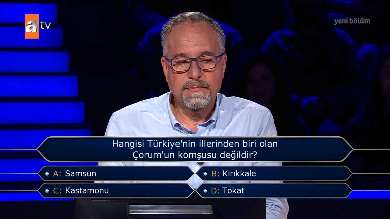 Milyoner'in yayınlanan son bölümünde "Hangisi Türkiye'nin illerinden biri olan Çorum'un komşusu değildir?" sorusunun cevabı şaşkınlık yarattı.