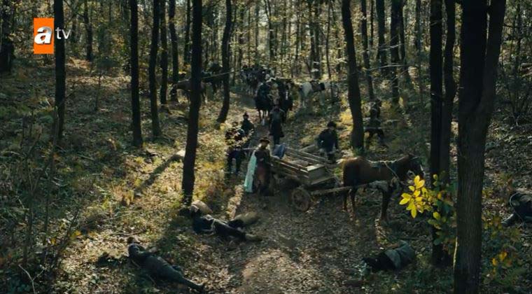 Etrafı sarılan Osman Bey ve Malhun Hatun kahramanca çarpışarak çemberi yardı ve ormana daldı. Katalan savaşçılar Anselmo ve Diego da ikilinin peşine takıldı.