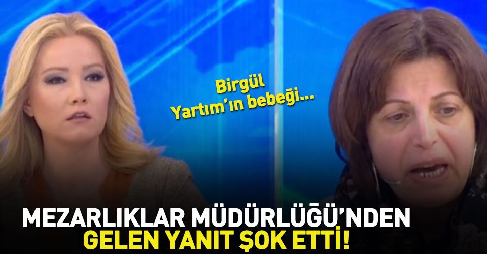 Müge Anlı son bölümde Birgül Yartım'ın bebeğiyle ilgili ilginç gelişmeler yaşandı. 35 yıl önce doğum yapan ve doğumdan 3 gün sonra bebeğinin öldüğünü öğrenen Birgül Yartım neden kayınpederi ve görümcesinden şüpheleniyor? İBB Mezarlıklar Müdürlüğü'nden bebeğin defini hakkında gelen bilgi neydi? Müge Anlı son bölümde yaşananları merak ediyorsanız