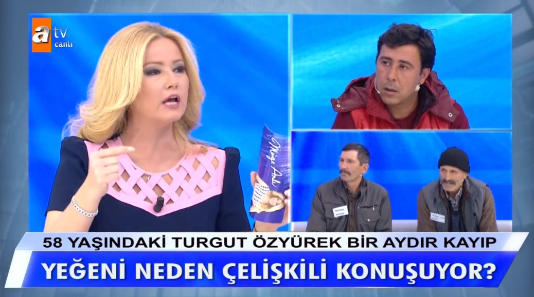 Müge Anlı'daki kayıp Turgut Özyürek'in eşi Necla Hanım hakkında ortaya çıkan gerçekler herkesi şaşırttı! Hafta içi her gün saat 10.00'da Atv ekranlarında izleyicisi ile buluşan Müge Anlı, canlı yayında karşılaştığı gerçekler karşısında şoke oldu. 58 yaşındaki kayıp Turgut Özyürek, eşi Necla Özyürek'le birlikte Manisa Ahmetli'de yaşıyordu. Turgut Bey, son dönemde kanser hastalığıyla mücadele veriyordu.