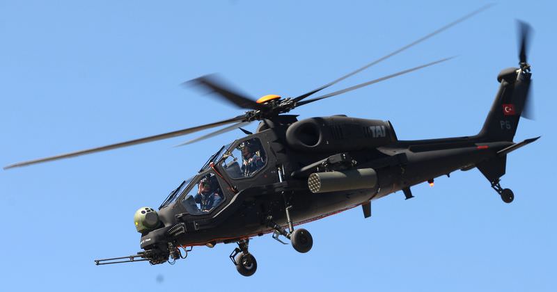 Burunda taşıdığı 20 mm'lik 500 mermi kapasiteli topa sahip ATAK helikopteri, kanat altında 76 roket taşıyor.