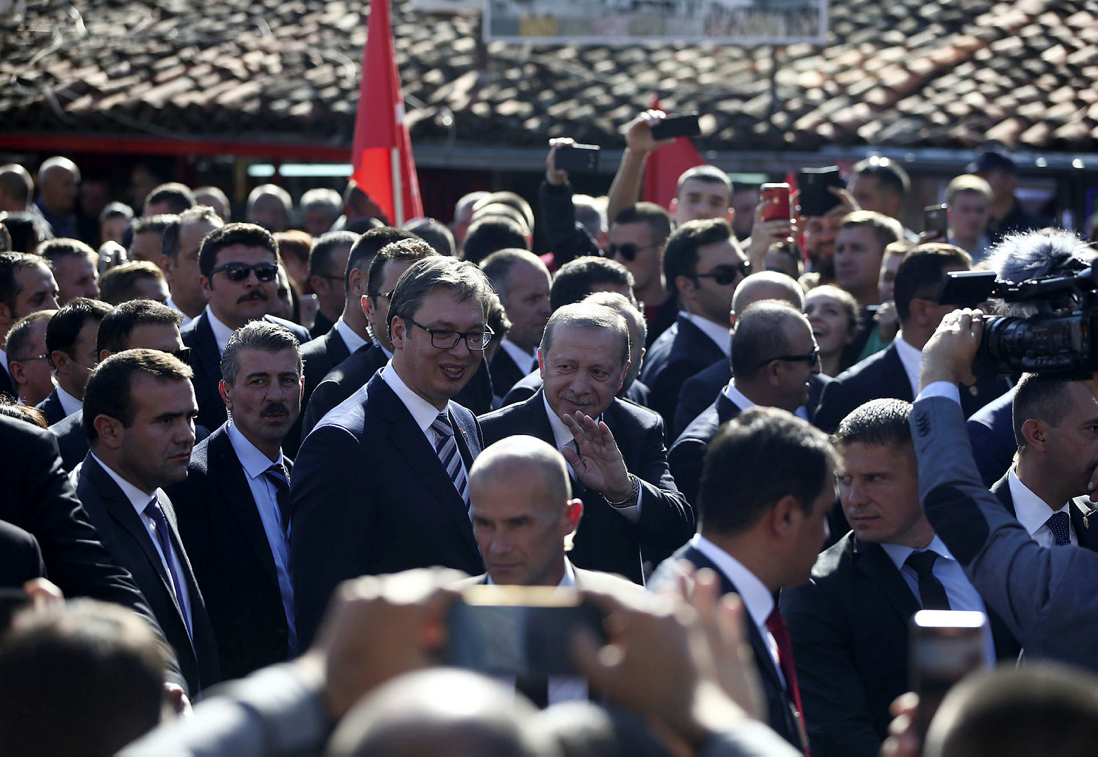 Cumhurbaşkanı Erdoğan ve Sırbistan Cumhurbaşkanı Aleksandar Vucic, Novi Pazar Belediyesi'nin önünde halka hitaplarının ardından şehir merkezinde yürüyüş yaptı.