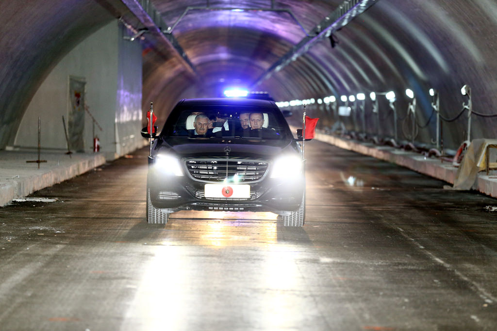 Erdoğan, kendi kullandığı makam aracıyla başbakan Binali Yıldırım ve Ulaştırma Denizcilik ve Haberleşme Bakanı Ahmet Arslan ile birlikte tüneli geçerek yetkililerden bilgi aldı.