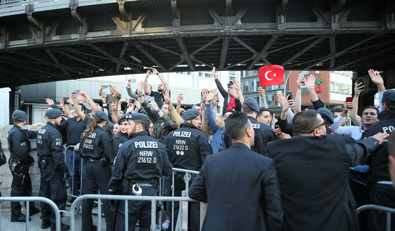 Cumhurbaşkanı Recep Tayyip Erdoğan, konaklayacağı otele gelişinde Almanya'da yaşayan Türk vatandaşların sevgi gösterisiyle karşılandı. Erdoğan, G20 Liderler Zirvesi'ne katılmak üzere geldiği Hamburg'da, Almanya Başbakanı Angela Merkel'i kabulünün hemen sonrasında konaklayacağı Sofitel Otel'e geldi.