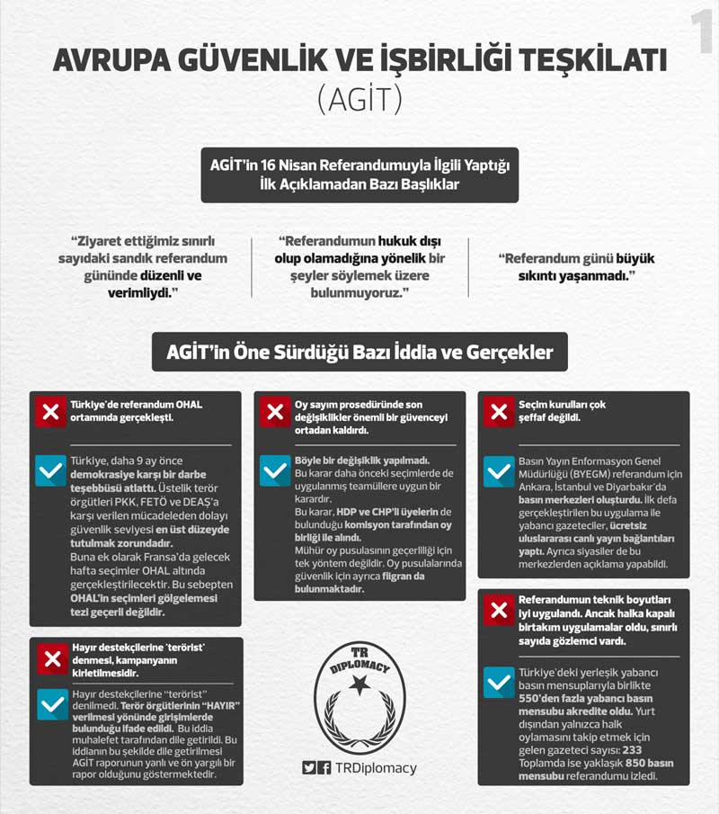 Anayasa değişikliği referandumu yapıldı ve millet kararını verdi. Ancak sonucu sindiremeyen çevreler yalanlar ve iftiralarla çıkan sonucu karalama çabasına girişti. Daha önce terör örgütleriyle ilişkileri olduğu ortaya çıkan AGİT görevlileri Türkiye'deki referandum süreciyle ilgili gerçek dışı iddialar ortaya attı. İşte karalama kampanyasının yalanları ve gerçekler....