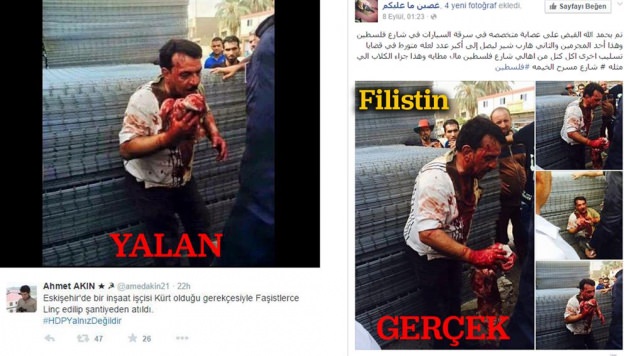 HDP ve PKK sempatizanları provokasyonlarına sosyal medya üzerinden devam ediyor. Sempatizanlar, Suriye ve Filistin'de çekilen katliam fotoğraflarını kullanarak tüm dünyaya "Cizre'de siviller katlediliyor" başlığı ile yayınlıyor. İstihbarat birimleride, son günlerde Cizre'de meydana geldiği iddia edilen olaylarda kullanılan fotoğrafların geçmiş dönemlerde işlenen suçlara ait olduğunu açıkladı.