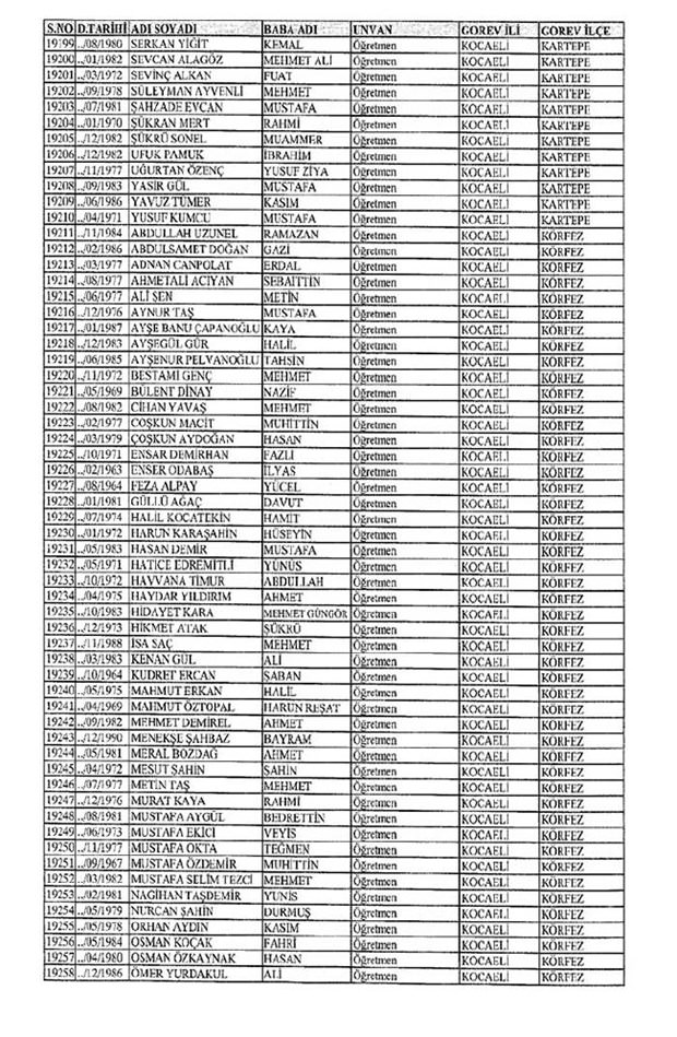 15 Temmuz darbesi sonrasında FETÖ ile bağlantısı olduğu ortaya çıkan MEB personeli olan 20 bin öğretmen görevden alındı. Açığa alınan öğretmenlerin listesi açıklandı.