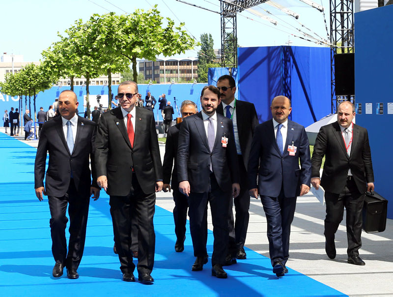 Törende, 28 üye ülke devlet liderleri için ayrılan bölümde Cumhurbaşkanı Erdoğan, İngiltere Başbakanı Theresa May ve ABD Başkanı Donald Trump yan yana oturdu. Merkel'in ise en uzak köşede yer alması dikkat çekti.