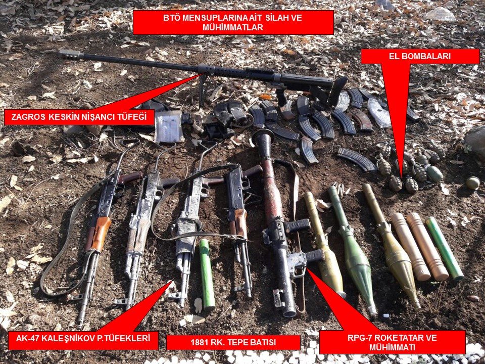 Bölgede dün başlatılan temas araması faaliyetinde etkisiz hale getirilen teröristlerin cesetleri ile çok sayıda silah, teçhizat, yaşam malzemesi ile örgütsel doküman bulundu.