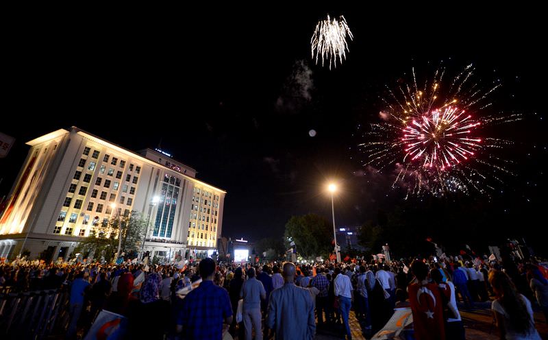 Başbakan Recep Tayyip Erdoğan'ın, resmi olmayan sonuçlara göre cumhurbaşkanı seçilmesi, tüm Türkiye'de ve dünyanın bazı şehirlerinde böyle kutlandı.