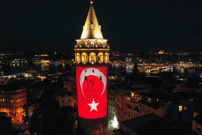19 Mayıs Atatürk'ü Anma, Gençlik ve Spor Bayramı, Galata Kulesi'ne yansıtılan görsellerle kutlandı.