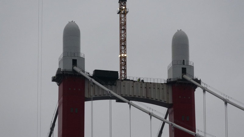 Çanakkale Boğazı'nda, Lapseki ve Gelibolu ilçeleri arasında inşa edilen 1915 Çanakkale Köprüsü'nün kulelerine top mermisi figürlerinin yerleştirilmesi çalışması tamamlandı.