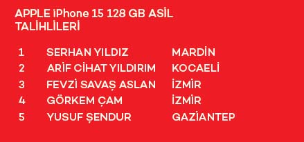 APPLE iPhone 15 128 GB ASİL TALİHLİLERİ