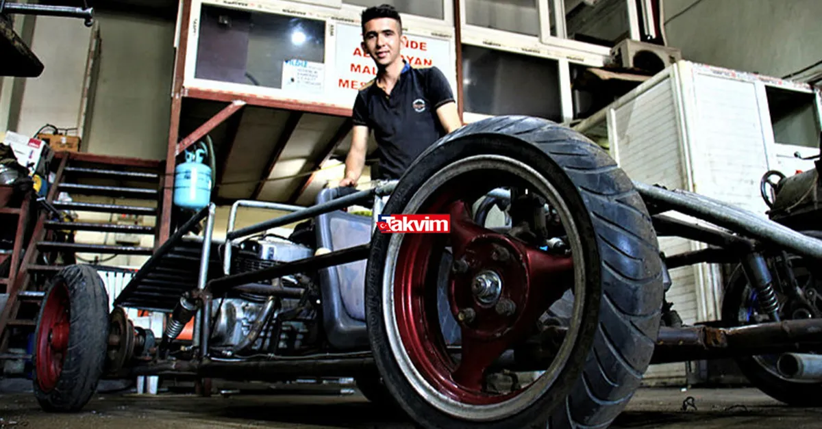 Mersin'in Erdemli ilçesinde torna ustası genç 3 yıl emek verip, mesaisi dışında çalışıp, haftalığından arttırdığı 5 bin lira ile kendi arabasını yaptı.