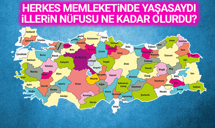 81 il hakkında bir araştırma yapan Tüik, "Herkes memleketinde yaşasaydı illerin nüfusu kaç olurdu?" sorusunun cevabını aradı. Türkiye'nin 81'i üzerinden yapılan araştırmanın sonucu herkesi şaşkına çevirdi. İşte 81 ilin nüfusuna bir de böyle bakın. Peki herkes kendi memleketinde yaşasaydı illerin nüfusu kaç olurdu?