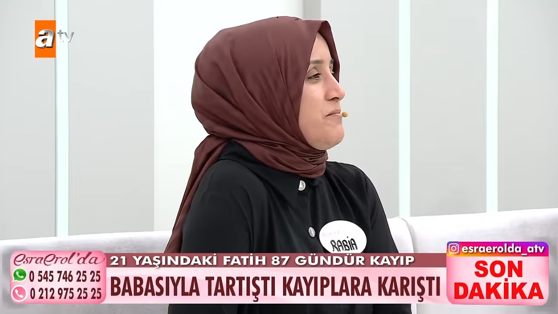 Rabia Hanım; 7 Temmuz 2024'ten beri haber alamadığı 21 yaşındaki oğlu Fatih Aydın'ı aramak için stüdyoya geldi.