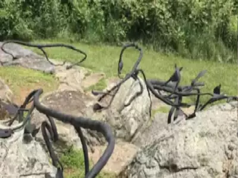 Eğer yılanı bulamadıysanız endişelenmeyin, çünkü çözümü sizinle paylaşacağız. Yılan, görüntünün tam ortasına yakın bir bölgede yer alıyor. Koyu siyah rengiyle dikkat çeken bu yılan, bir kayanın üzerinde oturuyor ve şekli itibarıyla ince, kaygan bir tüpü andırıyor.