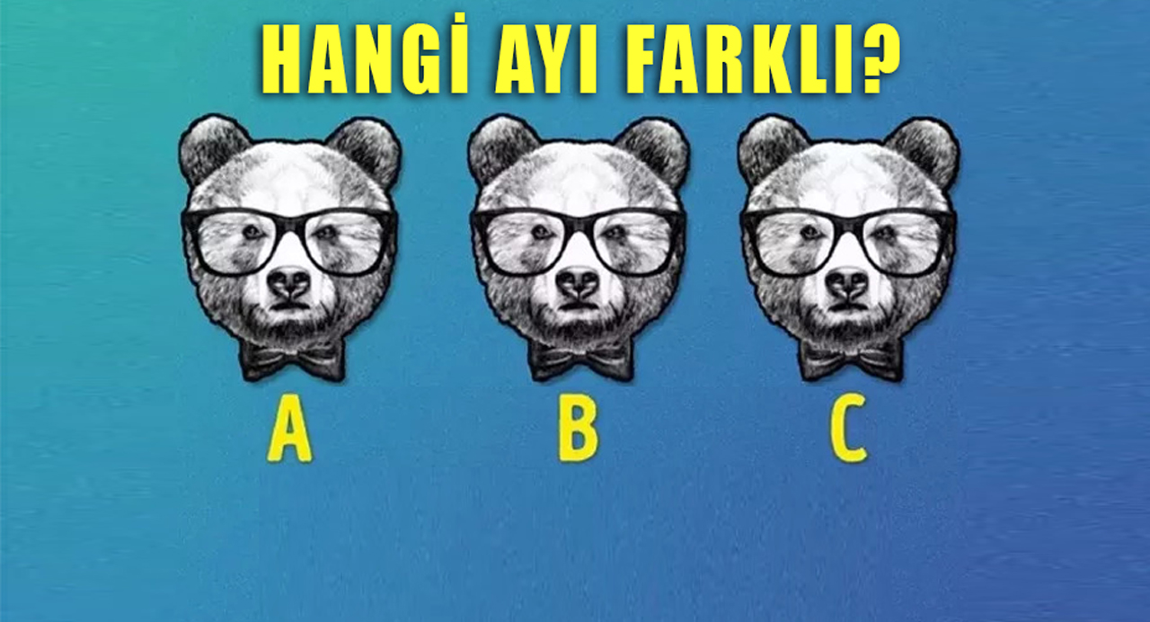 Kısa sürede viral olmayı başaran bu resimde üç ayı arasında hangi ayının farklı olduğunu bulmanız gerekiyor. Görselde benzer gözlüklere sahip üç ayı bulunmaktadır. Bulmaca "Hangi ayı diğerlerinden farklı?" sorusuyla internet kullanıcılarının karşısına çıktı. Paylaşılan bilgiye göre, internet kullanıcılarının sadece %10'u bu testi geçti. Peki, belirlenen süre içinde başarılı olacak mısınız? Şimdi görsele dikkatlice bakabilirsiniz.
