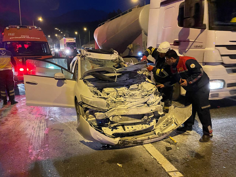 Alınan bilgiye göre, Adana yönüne seyreden FP 975 Kıbrıs Plakalı ismi öğrenilemeyen TIR sürücüsü, kırmızı ışıkta duran üzeri otomobil yüklü çekiciye ve onunda önündeki 01 ABV 714 plakalı hafif ticari kamyonete ve onun önündeki 42 AGC 979 plakalı Slaj yüklü tıra arkadan çarptı.