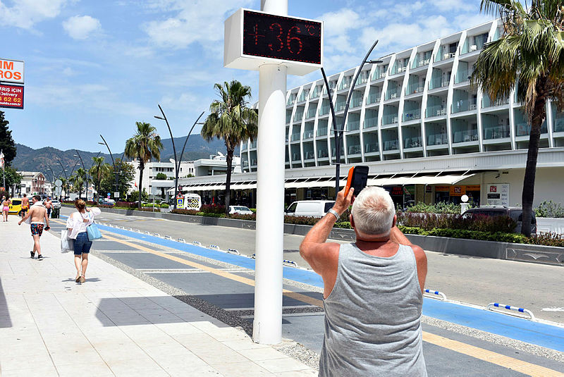 Afrika'dan gelen sıcak havanın etkisini gösterdiği Marmaris'te, şehir merkezinde caddelere konumlandırılmış elektronik termometreler, gölgede 36 dereceyi gösterdi.