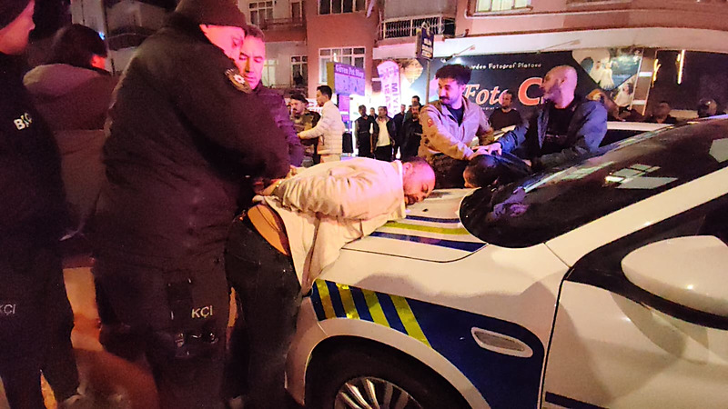 Polis ekipleri şüphelilerden kimlik istedi. Kimlik vermek istemeyen 3 kişiden Sait S., bu sırada kaza yerinde bulunan Trafik Tescil ve Denetleme Şube Müdürü Gürsoy Yalvaç'a tekme attı.