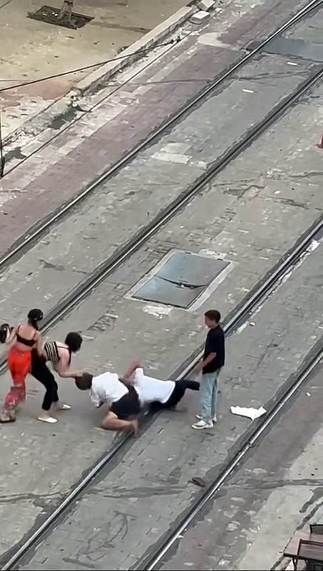 Kavga, Muratpaşa ilçesi Şarampol Caddesi tramvay yolu üzerinde yaşandı. 3 kadın, önce tartışıp sonra kavga etmeye başladı.