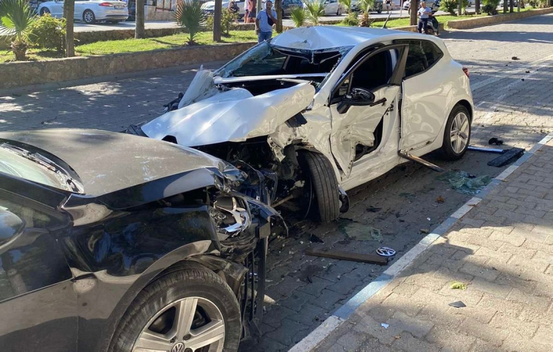 Antalya'nın Kaş ilçesinde freni arızalanan minibüs, park halindeki 8 araca çarparak durabildi.