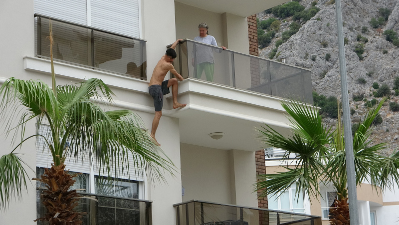 Antalya'nın Konyaaltı ilçesinde annesini 2. katta balkonda alıkoyup, aşağıya eşyalar atan şahıs, polis ekiplerini harekete geçirdi. Özel harekatın daireye girmesiyle birinci kata inen şahıs, itfaiyenin şişme yatağına atladı ve gözaltına alındı.