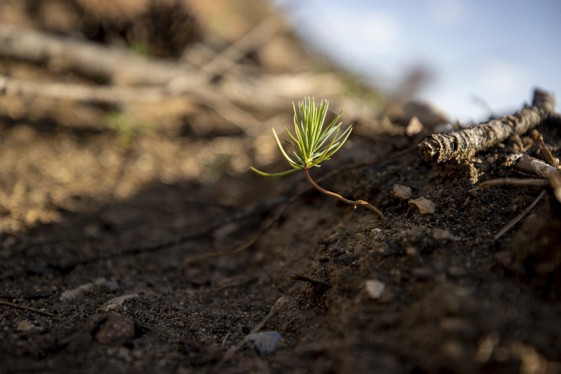 Bir yandan fidanlar toprakla buluşturulurken bir yandan da doğal gençleştirme yöntemlerinin uygulandığı bölgelerde ilkbaharın gelmesiyle küçük kızılçam fidanları yeşerdi.