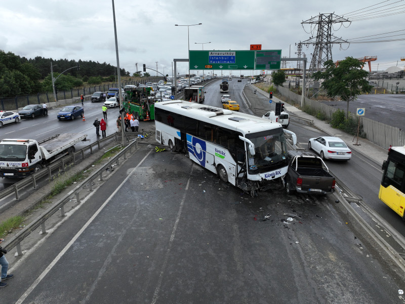 Arnavutköy'de kırmızı ışıkta bekleyen araca çarparak karşı yöne geçen yolcu otobüsü, 4 araca daha çarptı.