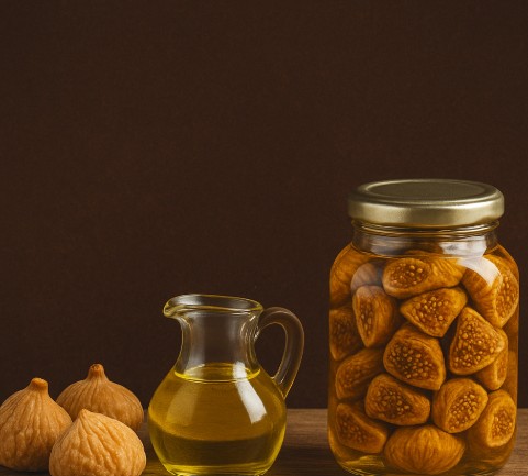 Kavanoza doldurulan incirlerin üzerine zeytinyağı eklenir.