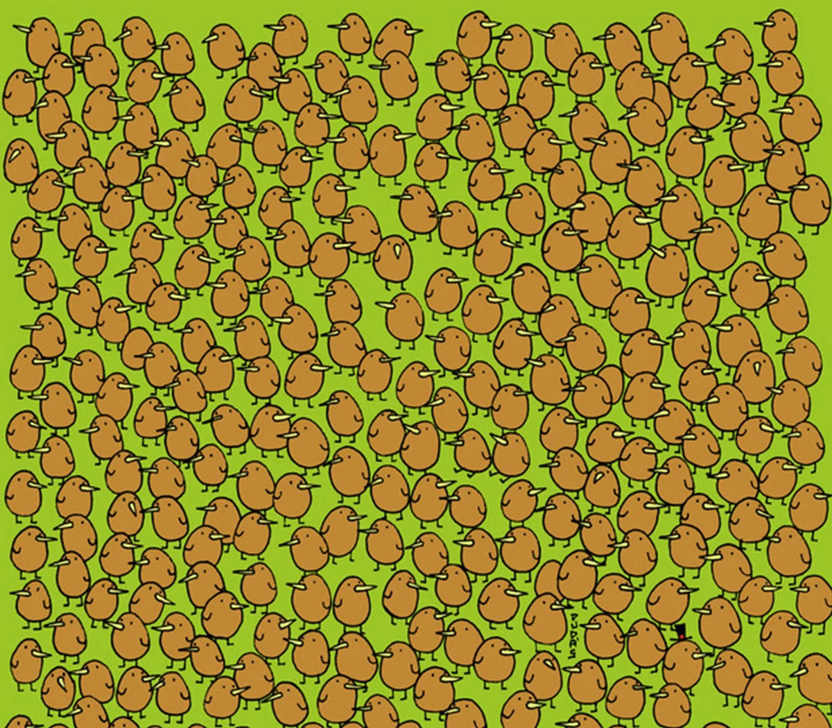 Bugün sizlerle paylaştığımız bu görüntüde bahçede kuşların arasına gizlenmiş 4 kiviyi bulmanız isteniyor. Bu yalnız dikkat seviyesi çok yüksek olanların çözebileceği bir zeka oyunu olarak tanımlanıyor. Son dönemde bu tarz görseller insanların ilgisini çekmeyi başardı. İlk olarak bunun kolay bir meydan okuma olmadığını net bir şekilde ifade etmek gerekiyor. Şimdi sizi kivileri bulmanız için görselle baş başa bırakıyoruz.