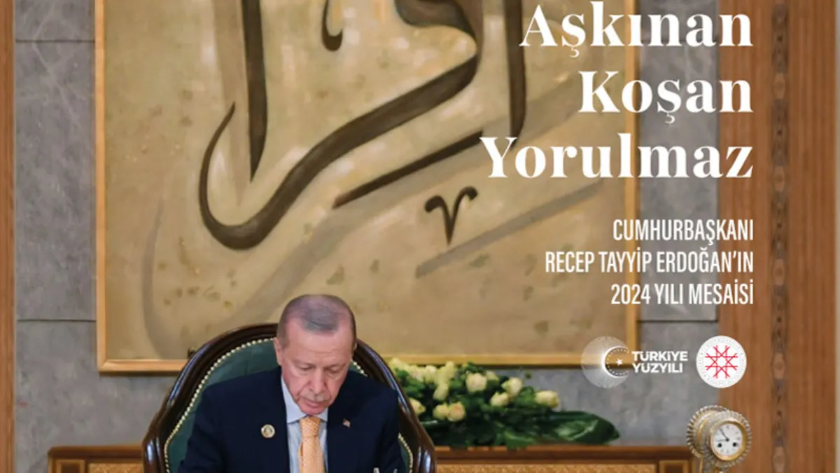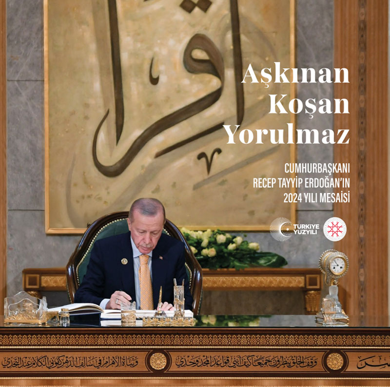 Cumhurbaşkanlığı İletişim Başkanlığınca, Başkan Recep Tayyip Erdoğan'ın 2024'te yurt içi ve yurt dışındaki tüm programları, temasları ve çalışmalarının yer aldığı "Aşkınan Koşan Yorulmaz "kitabı yayımlandı.