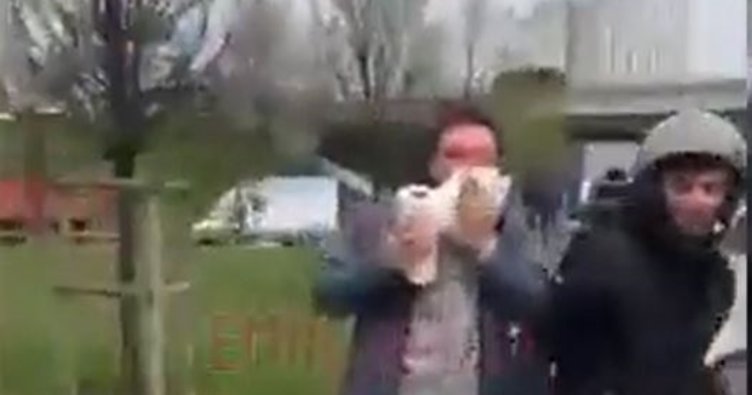 Çevrede bulunan bir vatandaş ise "İki kişi birine saldırın. Böyle devam edin. Karakolda da ifade verirsiniz. Plakanızı aldım ben sizin" diyerek tepki gösterdi.