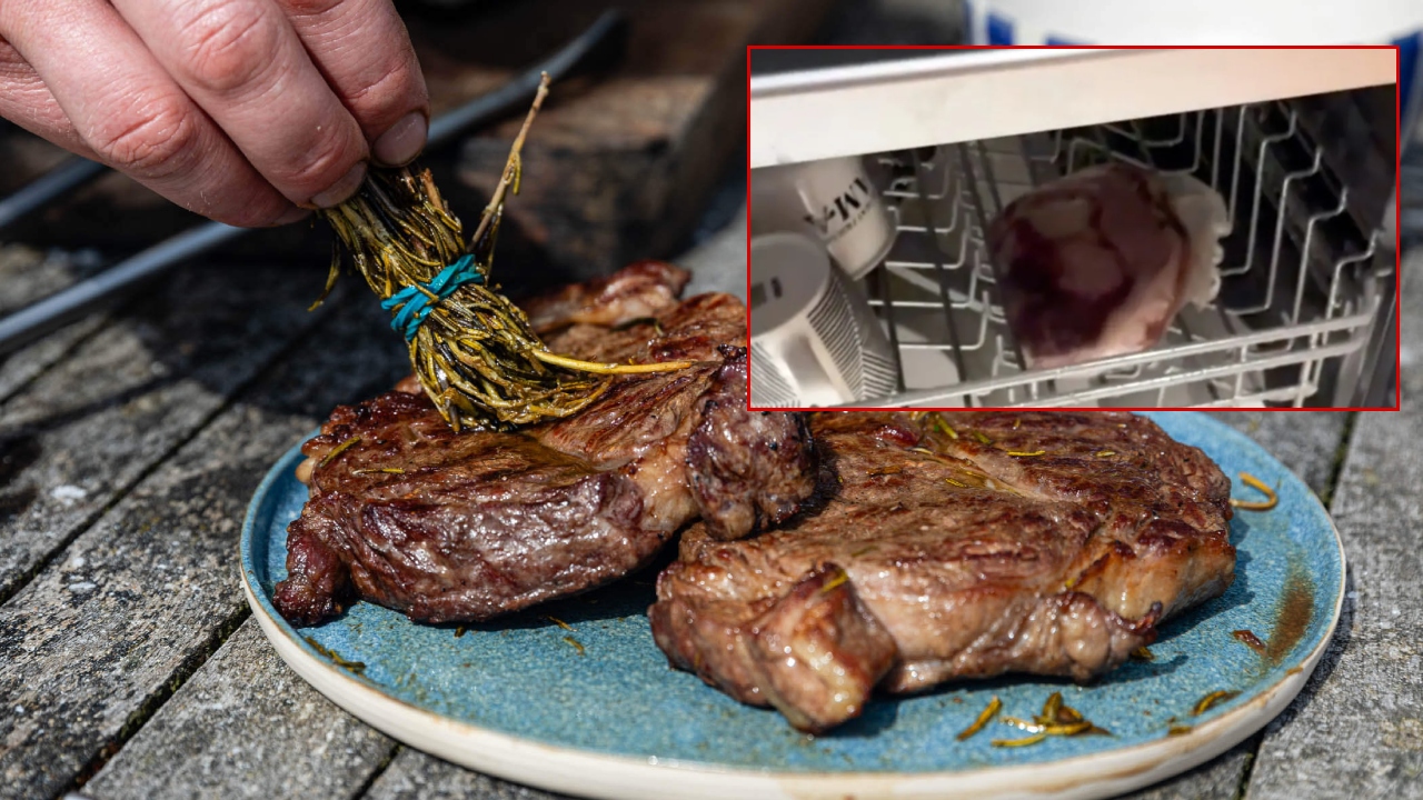 Biftek bulaşık makinesinde pişti