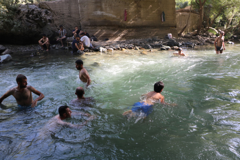 Derede yüzen Furkan Doğan (20), serin sulara girmenin keyfini yaşadıklarını belirterek,"Burada hava sıcaklığı 40 dereci buldu.