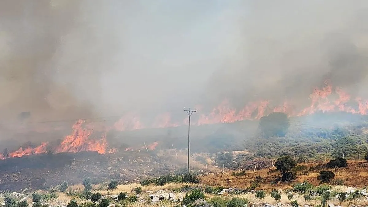 İzmir'in Menderes ilçesinde saat 13.00 sıralarında, ilçeye bağlı Karacadağ mevkiinde bulunan ormanlık alanda yangın çıkmıştı.