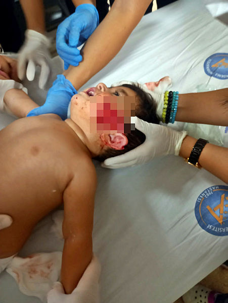 Diğer köpeğin sahibi pitbull cinsi köpeği ayırıp sahibi A.T. O.'ya teslim etti. Köpek burada bir anda market içindeki bebeğe saldırdı. Sesleri duyup gelen baba Hasan Kaçar da köpeğin saldırısına uğradı. Olay sonrası köpek ve sahibi olay yerinden ayrılırken, baba Kaçar kolundan ve bacağından, bebeği de yüzü ile kulağından yaralandı.