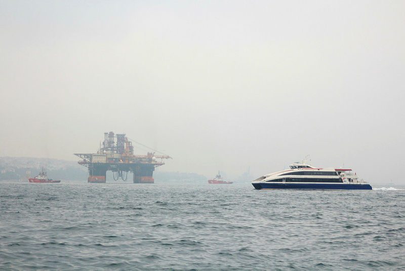 Romanya'dan, İspanya'ya giden Bahama bayraklı dev petrol arama platformu, İstanbul Boğazı'ndan geçti.