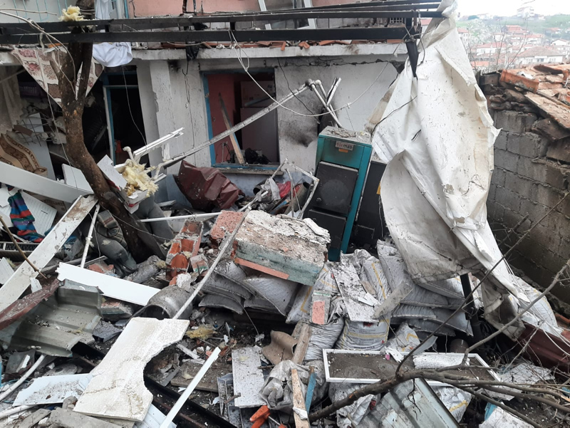 Balıkesir'in Karesi ilçesinde bir evde bomba gibi patlayan mutfak tüpü evi yıktı.